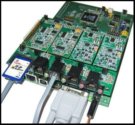 The KIT is intended for the developers wiling to build there own VoIP PBXs. It is built using the Digital Signal Processor ( 800 MMACS) from Analog Devices. It runs uClinux and Asterisk.